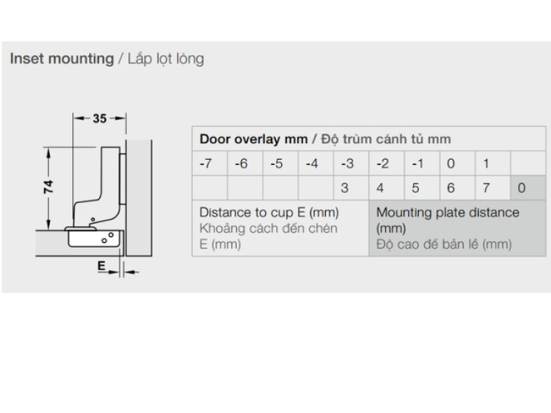 Để đáp ứng nhu cầu lắp đặt đa dạng, Bản Lề Lọt Lòng Giảm Chấn Hafele 315.06.752 được trang bị các thông số kỹ thuật chi tiết và khả năng điều chỉnh linh hoạt: