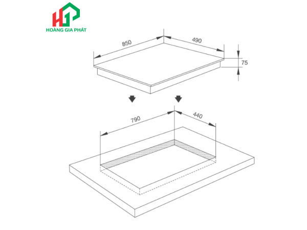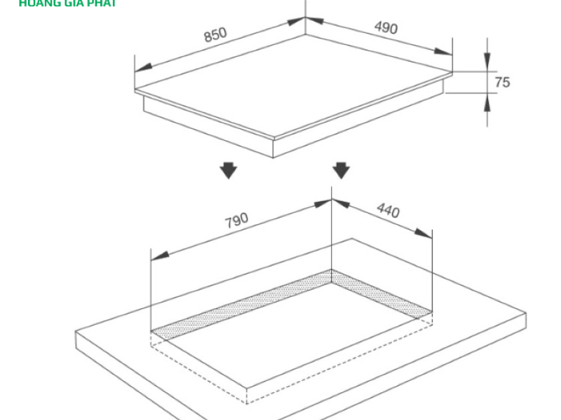 Việc lắp đặt bếp gas âm yêu cầu sự chính xác. Người dùng cần khoét mặt đá bếp theo đúng kích thước tiêu chuẩn mà nhà sản xuất cung cấp, cụ thể là (W790 x D440mm). Đảm bảo không gian bên dưới bếp được thông thoáng, có luồng khí lưu thông tốt, giúp bếp hoạt động hiệu quả, an toàn và bền bỉ hơn.