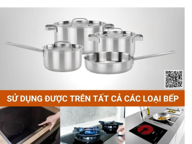 Cấu trúc đáy liền ba lớp (Inox 304 - Nhôm - Inox 430) không chỉ mang lại khả năng truyền nhiệt và giữ nhiệt vượt trội mà còn là yếu tố then chốt giúp bộ nồi hoạt động hiệu quả trên mọi loại bếp. Lớp nhôm bên trong đảm bảo khả năng dẫn nhiệt nhanh, trong khi lớp Inox 430 bên ngoài tương thích với bếp từ và các loại bếp khác. Sự kết hợp này tạo nên một giải pháp nấu nướng linh hoạt, đáp ứng mọi nhu cầu và điều kiện sử dụng của người tiêu dùng Việt.