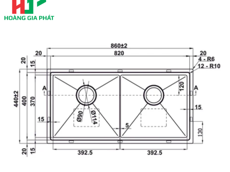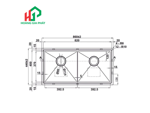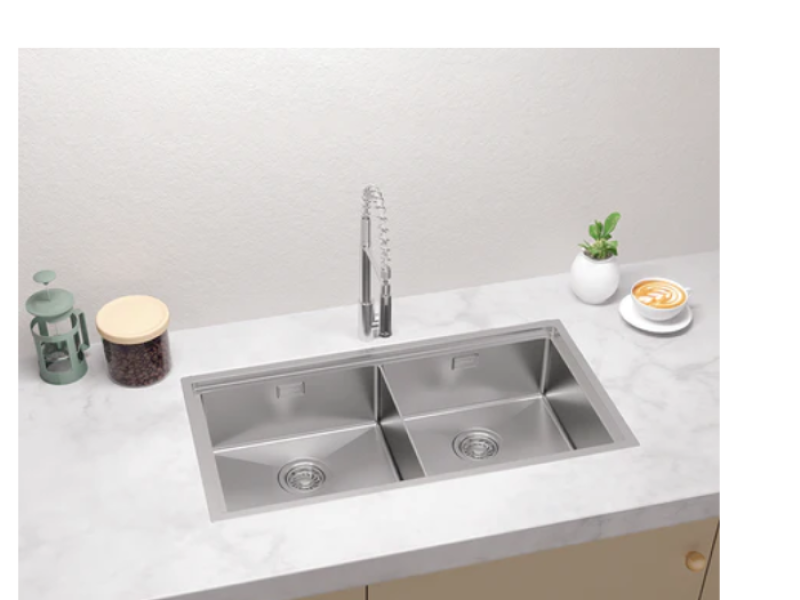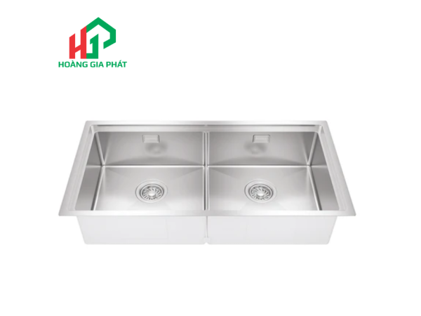 Sản phẩm thuộc dòng chậu đôi handmade, được chế tác tỉ mỉ, đảm bảo độ chính xác và thẩm mỹ cao. Một trong những cải tiến đáng chú ý là việc tăng cường độ dày của vật liệu: lòng chậu có độ dày lên tới 1.0mm, trong khi vành chậu dày 2.0mm. Độ dày này không chỉ mang lại cảm giác chắc chắn, bền bỉ mà còn giúp giảm thiểu tiếng ồn hiệu quả khi xả nước hoặc va chạm đồ dùng. Góc chậu được thiết kế nhỏ với bán kính chỉ R10, tạo nên vẻ ngoài thanh thoát, hiện đại. Đồng thời, thiết kế góc R10 giúp việc vệ sinh lòng chậu trở nên dễ dàng hơn, hạn chế tối đa tình trạng bám bẩn ở các góc khuất.
