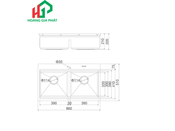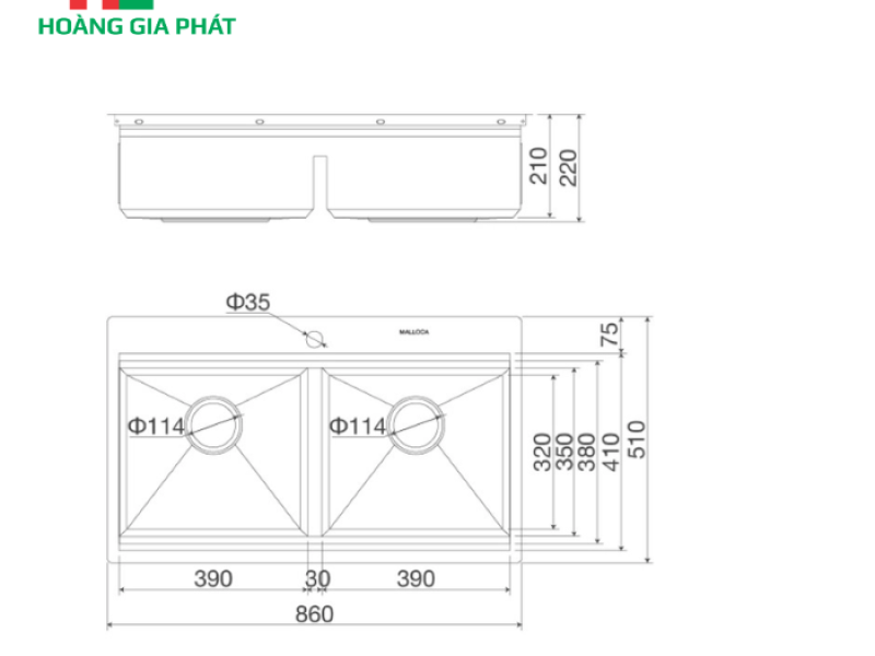 Để quý khách hàng có cái nhìn rõ ràng và chi tiết nhất về sản phẩm, dưới đây là bảng thông số kỹ thuật của Chậu rửa chén 2 hố MALLOCA MS 862: