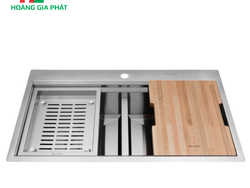 Điểm cộng lớn nhất của Chậu rửa chén 2 hố MALLOCA MS 862 chính là bộ phụ kiện đi kèm. Bao gồm một rổ phụ bằng inox chắc chắn và một thớt gỗ dày dặn, các phụ kiện này không chỉ tăng cường tính tiện dụng mà còn góp phần nâng cao thẩm mỹ cho không gian bếp. Bạn có thể dễ dàng sử dụng chúng để sơ chế thực phẩm, úp chén đĩa hay rửa rau củ, sau đó tháo rời khi không cần thiết để tối đa hóa không gian sử dụng của chậu.