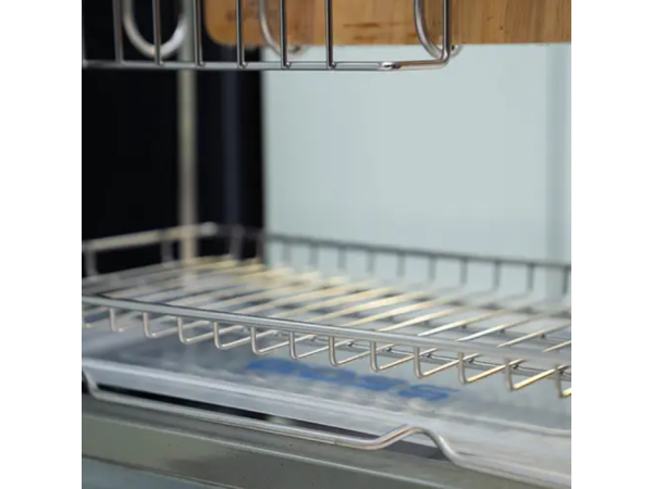Điểm cộng lớn của sản phẩm là hệ thống thanh nan làm từ inox 304 có độ dày vượt trội. Điều này không chỉ mang lại cảm giác chắc chắn, bền bỉ mà còn đảm bảo khả năng chịu lực tốt. Các thanh nan được gia công tỉ mỉ, bề mặt nhẵn mịn, không gây trầy xước cho bát đĩa, dao kéo hay thớt khi đặt vào. Khoảng cách giữa các thanh nan được tính toán hợp lý, tạo điều kiện cho không khí lưu thông, giúp vật dụng nhanh khô ráo, hạn chế nấm mốc và mùi hôi.