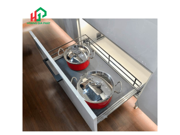 Với thiết kế dạng rổ, sản phẩm cho phép bạn sắp xếp nhiều loại xoong, nồi, chảo một cách ngăn nắp. Các tầng, các ngăn được bố trí hợp lý giúp tận dụng tối đa chiều cao của tủ bếp dưới, biến không gian tưởng chừng chật hẹp trở nên gọn gàng và khoa học.