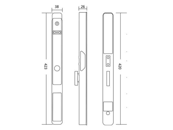 Điểm nhấn đầu tiên của Hyundai HY-SLS005 chính là thiết kế của nó. Với độ dày chỉ từ 35mm và yêu cầu độ rộng đố cửa tối thiểu là 55mm, mẫu khóa này hoàn toàn tương thích với đa số các loại cửa nhôm có đố hẹp trên thị trường, đặc biệt là các dòng cửa nhôm Xingfa phổ biến. Thân khóa được chế tác từ hợp kim nhôm cao cấp, phủ lớp sơn mạ Anode bền bỉ, không chỉ mang lại vẻ ngoài sang trọng, tinh tế mà còn có khả năng chống trầy xước, chống ăn mòn hiệu quả. Lớp sơn này cũng có đặc tính không dẫn điện, tăng cường thêm lớp bảo vệ an toàn cho người sử dụng.