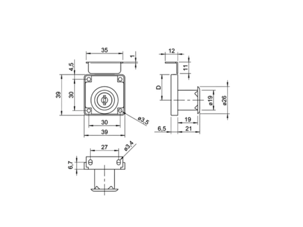 Khóa vuông Hafele 30 mm- 232.01.230