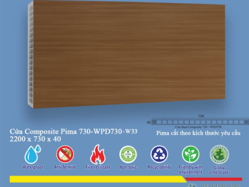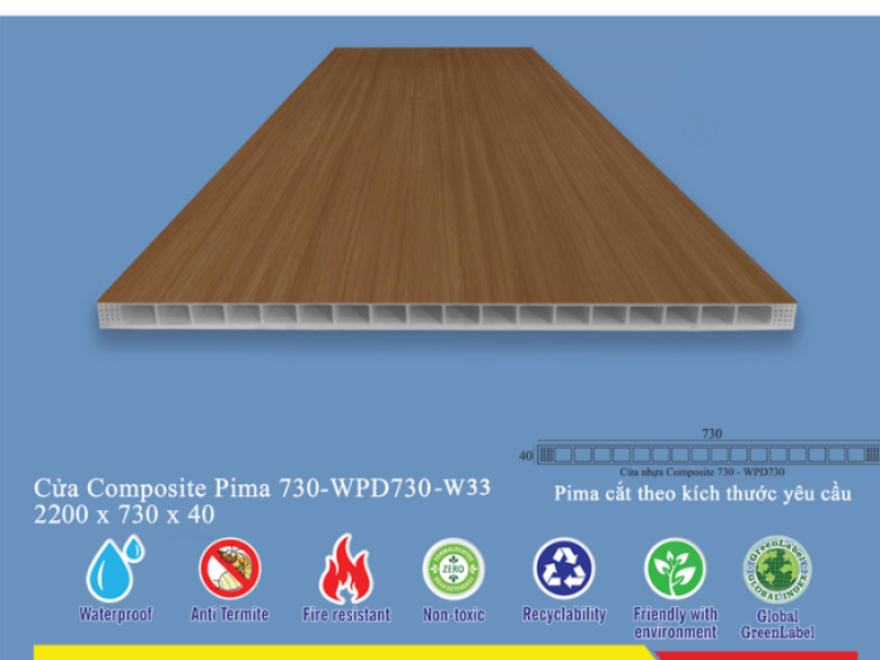 Nhiều loại phôi cửa nhựa trên thị trường hiện nay không đảm bảo an toàn cho sức khỏe và môi trường. Tuy nhiên, Phôi Cửa Pima 73022 được sản xuất trên dây chuyền công nghệ hiện đại, tuân thủ các tiêu chuẩn quốc tế về an toàn vật liệu, thân thiện với người sử dụng và môi trường sống.