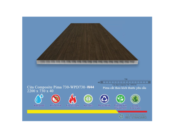 Phôi Cửa Pima 73022 là sản phẩm thuộc dòng cửa composite cao cấp, được sản xuất trên dây chuyền công nghệ hiện đại. Sản phẩm này được thiết kế đặc biệt với lớp phủ vân gỗ W44, mang đến vẻ đẹp tự nhiên, sang trọng và tinh tế, giống như gỗ thật nhưng lại sở hữu những đặc tính vượt trội của vật liệu composite.
