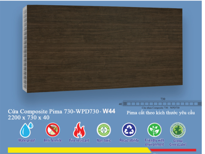 Khi nhắc đến vật liệu nhựa cho cửa, nhiều người thường nghĩ ngay đến các loại nhựa PVC, UPVC thông thường. Tuy nhiên, Phôi Cửa Pima 73022 thuộc dòng cửa nhựa composite, mang đến những cải tiến vượt bậc so với các sản phẩm truyền thống: