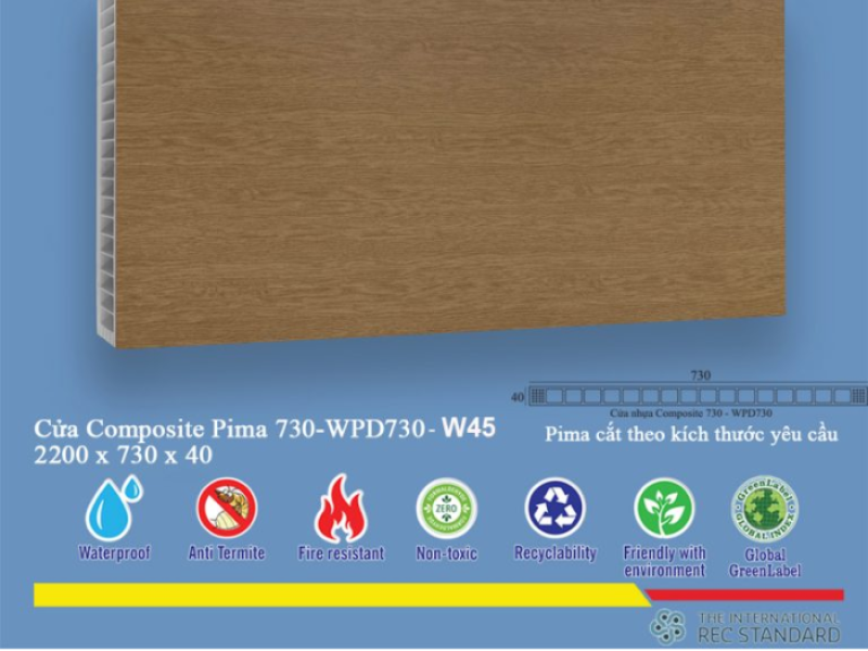 Khả năng chống ẩm vượt trội của vật liệu giúp Phôi Cửa Pima 73022 trở thành lựa chọn lý tưởng cho các khu vực có độ ẩm cao như nhà tắm, nhà vệ sinh. Sản phẩm không chỉ đảm bảo độ bền mà còn ngăn ngừa tình trạng ẩm mốc, mối mọt, giữ cho không gian luôn sạch sẽ và thoáng đãng.