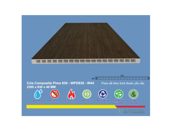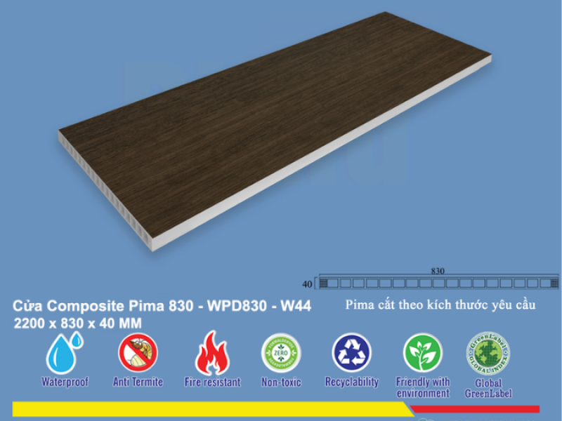 Khả năng chống ẩm, chống nước vượt trội của vật liệu nhựa composite làm cho Phôi cửa Pima 83022 trở thành lựa chọn hoàn hảo cho cửa nhà tắm và nhà vệ sinh. Nó hạn chế tối đa tình trạng ẩm mốc, cong vênh hay hư hỏng do tiếp xúc với nước thường xuyên, đảm bảo độ bền lâu dài cho sản phẩm.