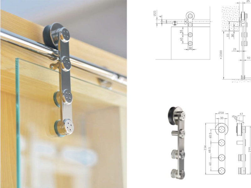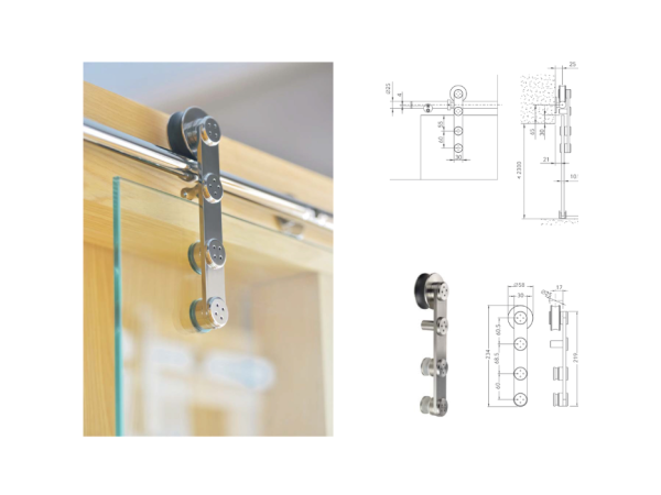 Khả năng chịu tải 100kg, kết hợp với các bộ phận chặn cửa và dẫn hướng, giúp cánh cửa vận hành an toàn, giảm thiểu rủi ro va đập hoặc trượt khỏi ray.