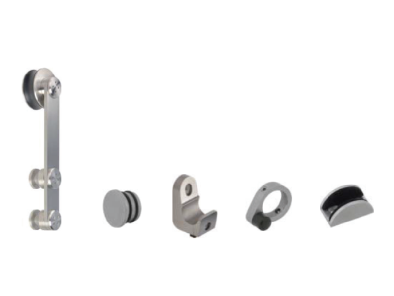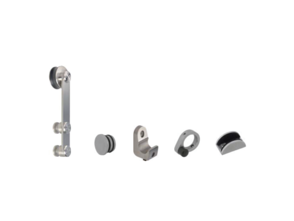 Một bộ phụ kiện IMUNDEX 715.11.101 đầy đủ bao gồm các thành phần thiết yếu, đảm bảo một hệ thống cửa kính trượt hoạt động hoàn chỉnh: