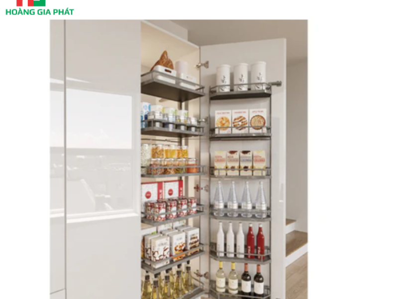 Cơ chế hoạt động của rổ là gắn liền với cánh tủ. Điều này có nghĩa là khi bạn mở cánh tủ ra, toàn bộ hệ thống rổ sẽ được kéo ra ngoài theo, giúp bạn dễ dàng tiếp cận mọi thứ bên trong mà không cần phải cúi hay với tay sâu vào trong. Khi đóng cánh tủ lại, hệ thống rổ sẽ ẩn đi, giữ cho không gian bếp luôn gọn gàng, thẩm mỹ, không bị lộ lộn xộn. Đây là một giải pháp lý tưởng cho những căn bếp có diện tích hạn chế hoặc những gia đình yêu thích sự ngăn nắp tuyệt đối.