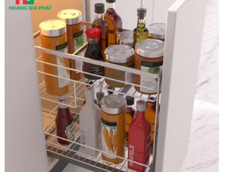 Không gian bếp thường chứa đựng rất nhiều loại gia vị khác nhau, từ lọ muối, tiêu nhỏ nhắn đến chai dầu ăn, giấm lớn. Rổ Đựng Gia Vị Hafele 549.20.039 được thiết kế với các ngăn chứa linh hoạt, có khả năng sắp xếp gọn gàng nhiều loại chai lọ với kích thước khác nhau. Bạn có thể dễ dàng tìm thấy loại gia vị mình cần mà không tốn nhiều thời gian tìm kiếm, giúp quá trình chuẩn bị và chế biến món ăn trở nên nhanh chóng và hiệu quả hơn. Việc sắp xếp khoa học này cũng góp phần tạo nên một không gian bếp ngăn nắp, thẩm mỹ.