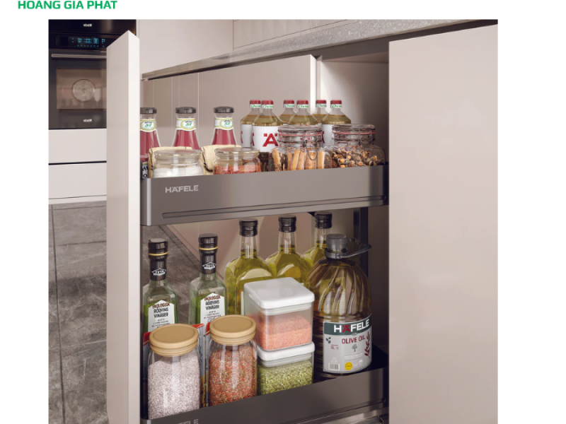 Điểm cộng lớn nhất của Rổ gia vị HAFELE 545.14.324 nằm ở khả năng tận dụng không gian một cách hiệu quả. Mặc dù kích thước tổng thể khá gọn gàng, nhưng bên trong lại mang đến một không gian lưu trữ rộng rãi. Thiết kế này đặc biệt hữu ích trong các căn bếp có diện tích hạn chế, nơi mà mỗi centimet đều quý giá. Khả năng chứa đựng đa dạng các loại chai lọ gia vị với kích thước khác nhau, từ lọ nhỏ đến chai lớn, hay thậm chí là các thiết bị điện gia dụng nhỏ như máy xay cầm tay, ấm đun nước mini, máy đánh trứng... đều được đáp ứng. Điều này giúp căn bếp trở nên ngăn nắp, khoa học và tăng hiệu quả nấu nướng.