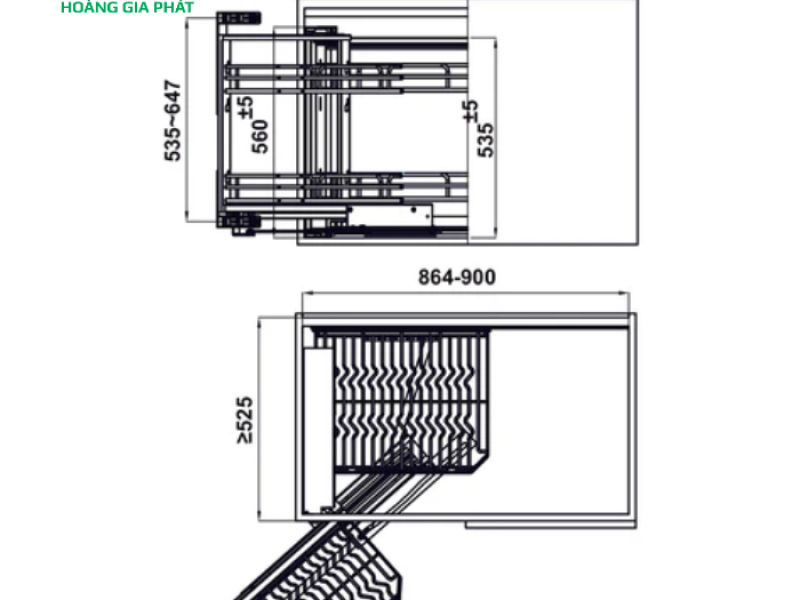 Thiết kế của Rổ góc Hafele 548.21.022 dựa trên nguyên tắc "kéo ra ngoài và xoay". Khi bạn mở cánh tủ và kéo tay nắm của rổ ngoài, hệ thống ray trượt sẽ dẫn động để rổ ngoài di chuyển ra phía trước. Đồng thời, một cơ chế liên kết đặc biệt sẽ kéo rổ bên trong ra theo, đặt nó song song với rổ ngoài. Điều này có nghĩa là bạn không cần phải cúi người hay dùng tay với sâu vào trong góc tủ để lấy đồ. Mọi thứ đều nằm trong tầm tay, dễ dàng quan sát và lấy ra một cách nhanh chóng.