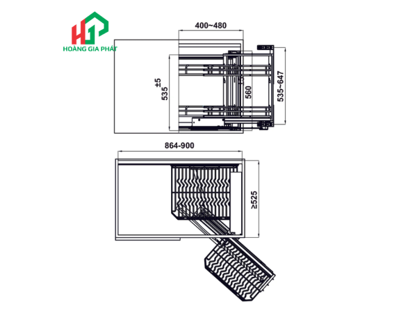 Màu sắc lớp hoàn thiện "Điện hoá" mang đến một vẻ ngoài hiện đại, tinh tế, dễ dàng hòa hợp với nhiều phong cách thiết kế tủ bếp khác nhau, từ cổ điển đến đương đại. Kích thước chiều rộng tủ phù hợp từ 864 - 900 mm và chiều sâu lọt lòng 525 mm cho phép sản phẩm lắp đặt linh hoạt vào hầu hết các loại tủ bếp góc tiêu chuẩn, tối ưu hóa không gian lắp đặt mà không gây cảm giác cồng kềnh.