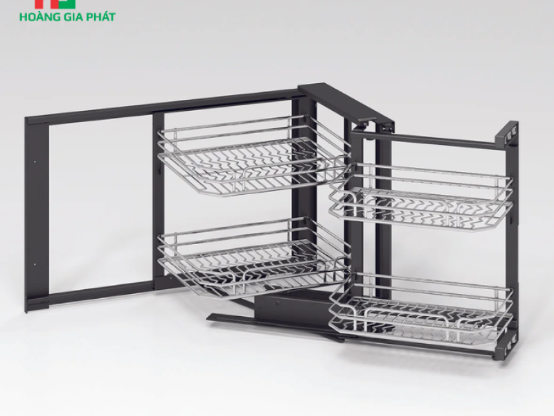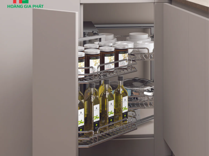 Đây là giải pháp hoàn hảo để tận dụng tối đa không gian góc bếp, vốn thường bị lãng phí. Cơ chế kéo liên hoàn thông minh giúp việc lưu trữ và lấy đồ trở nên cực kỳ tiện lợi.