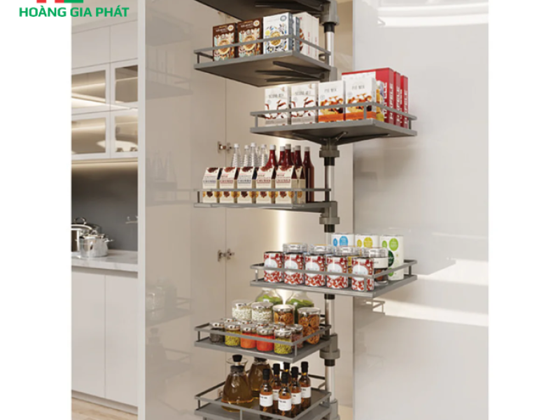 Với 7 tầng lưu trữ, sản phẩm này giúp bạn tận dụng tối đa không gian bên trong tủ bếp. Bạn có thể phân loại và sắp xếp các loại thực phẩm khô, gia vị, chai lọ, xoong nồi một cách khoa học. Đặc biệt, nó là giải pháp tuyệt vời cho các tủ bếp góc, nơi thường khó tận dụng và dễ trở nên lộn xộn.