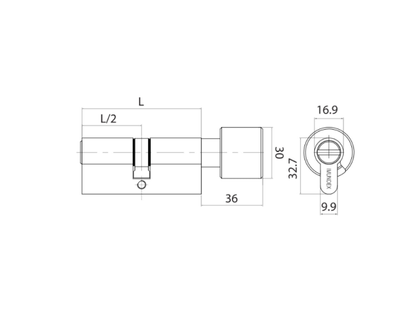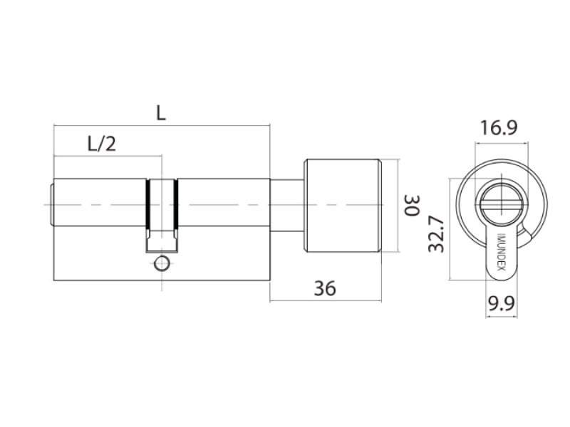 Ruột khóa Imundex 757.01.570 có kiểu dáng đầu vặn - đầu rãnh. Điều này có nghĩa là một đầu của ruột khóa sẽ kết nối với cơ chế vặn (thường là núm xoay bên trong phòng), và đầu còn lại sẽ kết nối với cơ chế rãnh để chốt khóa hoạt động. Thiết kế này đảm bảo sự tương thích với nhiều loại tay nắm và bộ khóa cửa phổ biến trên thị trường, đặc biệt là các loại khóa cửa phòng.
