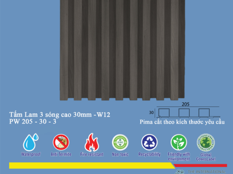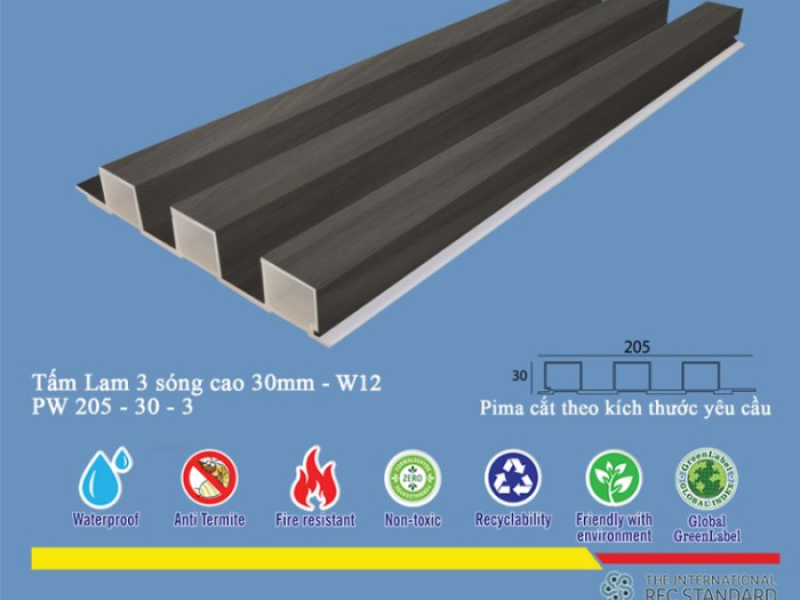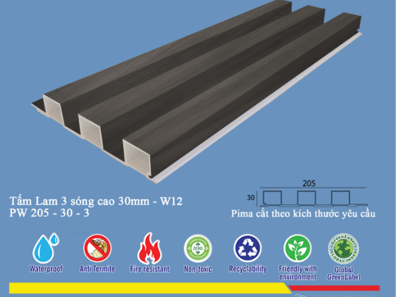 Trong bối cảnh ngành nội thất ngày càng phát triển, việc lựa chọn vật liệu ốp tường, trang trí không chỉ dừng lại ở tính thẩm mỹ mà còn đòi hỏi sự bền bỉ, thân thiện với môi trường và dễ dàng thi công. Tấm Lam 3 Sóng Pima 30 phủ vân gỗ W12 nổi lên như một giải pháp tối ưu, mang đến vẻ đẹp tinh tế và sang trọng cho mọi không gian sống, từ phòng khách, phòng ngủ đến các khu vực kinh doanh.