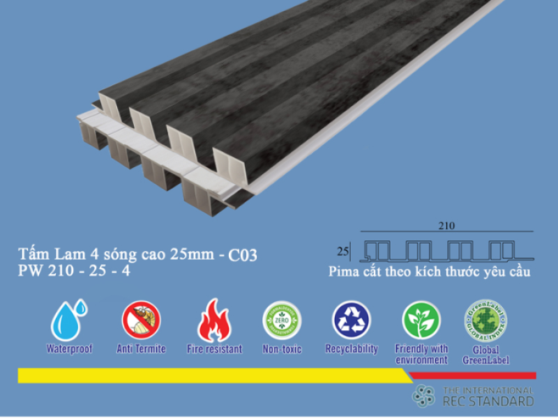 Xu hướng nội thất hiện đại ngày càng đề cao sự tối giản, tinh tế, đề cao công năng và vật liệu thân thiện với môi trường. Tấm Lam 4 Sóng Pima 25 phủ vân gỗ C03 hoàn toàn đáp ứng được những tiêu chí này.