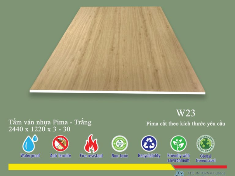 Tấm pima 15mm phủ HPL W23 là một loại TẤM VÁN NHỰA cao cấp. Trong dòng sản phẩm TẤM VÁN NHỰA, mỗi loại sẽ có những đặc tính và ứng dụng riêng. Tấm pima 15mm phủ HPL W23 nổi bật nhờ lớp phủ HPL cao cấp mang lại độ bền vượt trội và thẩm mỹ tinh tế, trong khi các loại TẤM VÁN NHỰA khác có thể tập trung vào các ưu điểm như chống nước tuyệt đối, giá thành hợp lý hơn hoặc trọng lượng siêu nhẹ tùy thuộc vào cấu tạo cốt liệu và lớp phủ bề mặt.