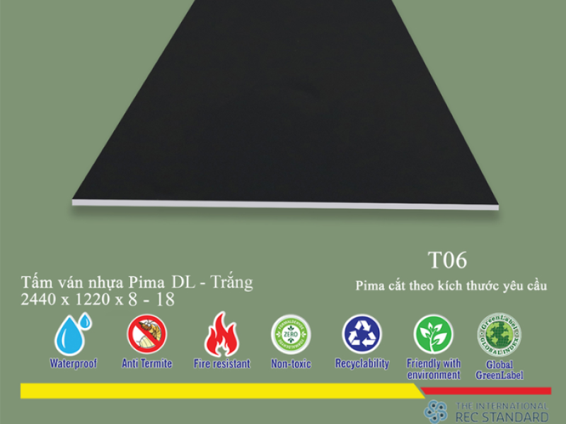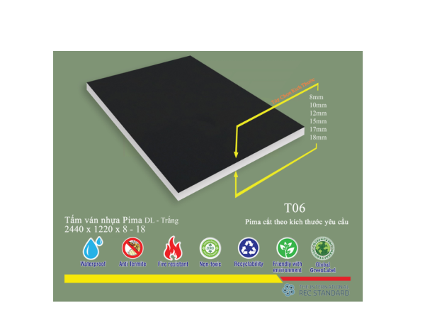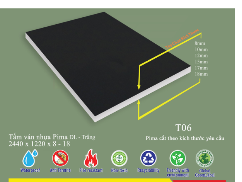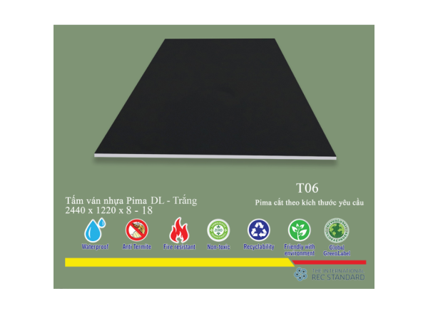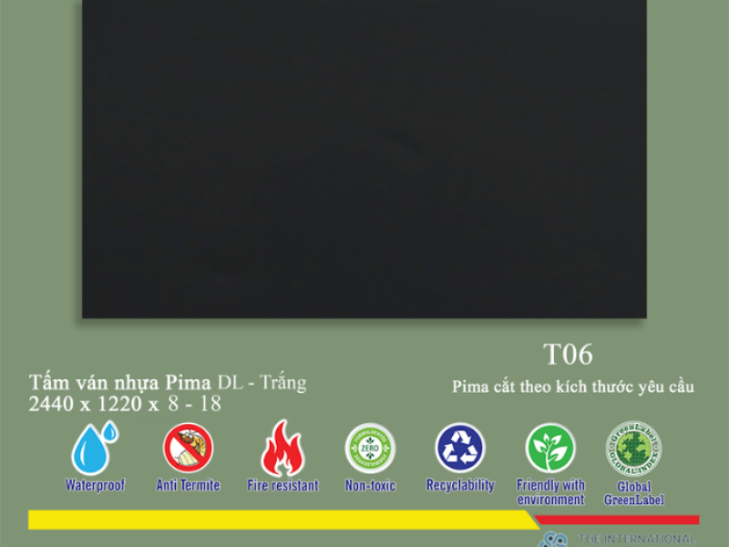 Điểm nhấn đặc biệt của sản phẩm nằm ở lớp phủ vân gỗ T06(PE) mang đến vẻ đẹp chân thực, tinh tế như gỗ tự nhiên, nhưng lại khắc phục được các nhược điểm thường gặp của gỗ thật như cong vênh, mối mọt hay ẩm mốc. Lớp phủ PE (Polyester) không chỉ tăng cường khả năng chống trầy xước, chống ẩm, chống hóa chất mà còn giữ cho màu sắc và vân gỗ luôn bền đẹp theo thời gian. Việc sản phẩm được phủ vân gỗ cả 2 mặt giúp tăng tính thẩm mỹ và đồng bộ cho các công trình, đồng thời mở rộng phạm vi ứng dụng.