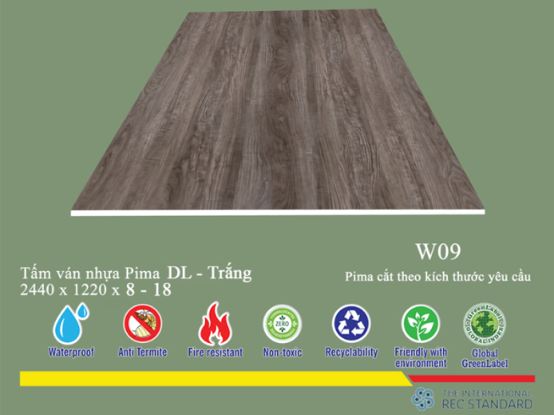 Tấm Pima DL 17mm phủ vân gỗ W09 (PE) - 2 mặt sở hữu những thông số kỹ thuật ấn tượng, đảm bảo hiệu suất hoạt động cao và độ bền lâu dài trong các ứng dụng nội thất.