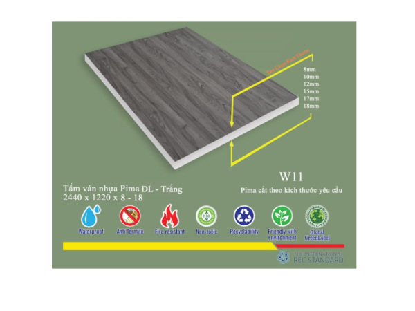 Tấm Pima DL 8mm phủ vân gỗ W11 - 1 mặt sở hữu nhiều đặc tính ưu việt, làm nên sự khác biệt so với các loại vật liệu truyền thống. Dưới đây là những điểm nhấn chính: