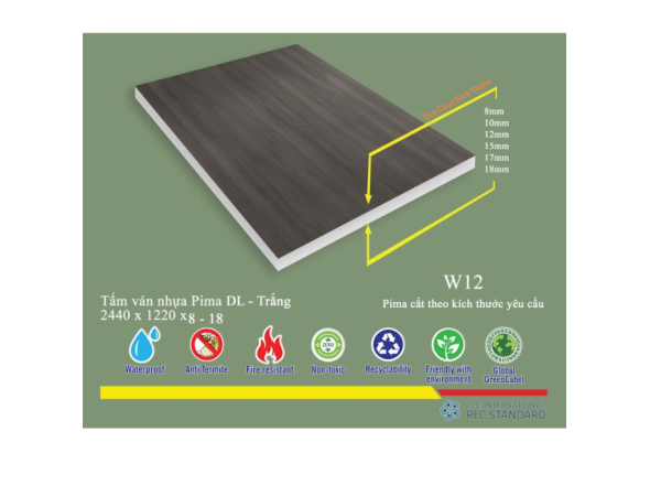 Tấm Pima DL 8mm phủ vân gỗ W12 - 1 mặt