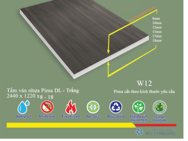 Trong bối cảnh ngành nội thất ngày càng phát triển và yêu cầu về thẩm mỹ, độ bền cũng như tính ứng dụng ngày càng cao, việc lựa chọn vật liệu phù hợp trở thành yếu tố then chốt quyết định sự thành công của mọi công trình. Tấm Pima DL 8mm phủ vân gỗ W12 - 1 mặt nổi bật như một giải pháp đột phá, mang đến vẻ đẹp tinh tế, sang trọng cùng những tính năng vượt trội, đáp ứng đa dạng nhu cầu từ trang trí nội thất đến các ứng dụng chức năng chuyên biệt.