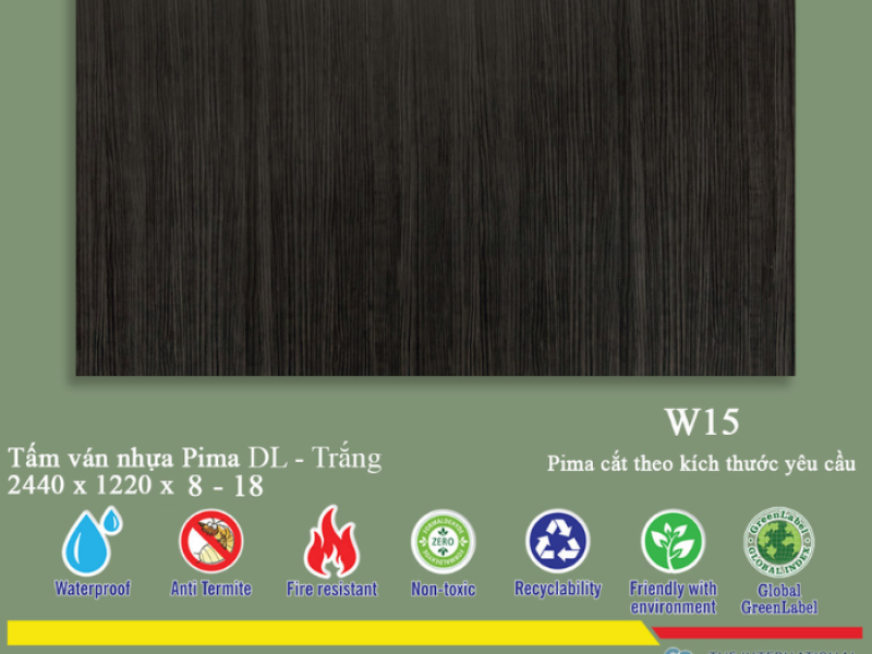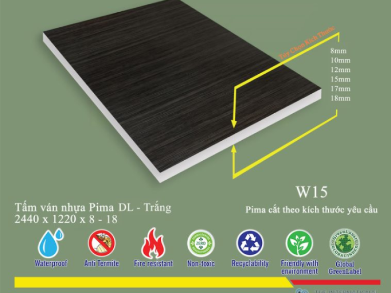 Chúng tôi cam kết cung cấp Tấm Pima DL 8mm chính hãng, đảm bảo chất lượng theo tiêu chuẩn quốc tế, với lớp phủ vân gỗ W15 sắc nét, bền màu.