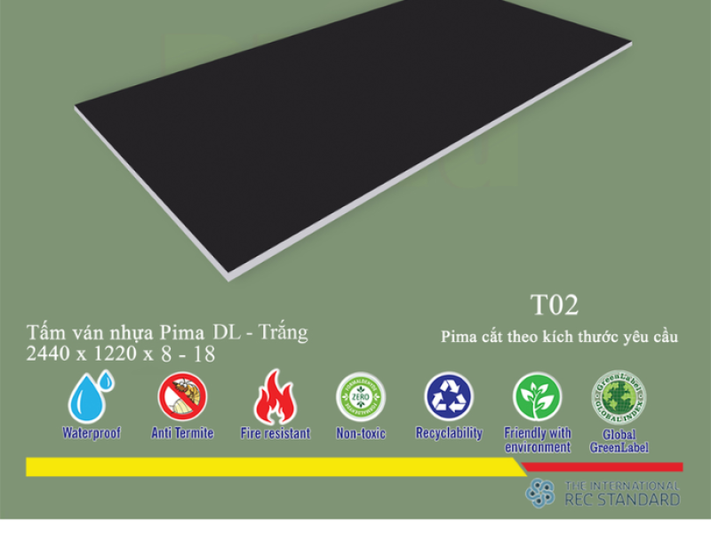 Tấm Pima DL 8mm phủ vân T02 (PE)- 1 mặt
