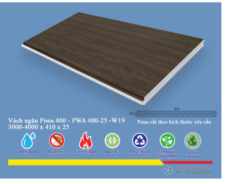 Được làm từ vật liệu composite, tấm vách ngăn Pima 40025 sở hữu độ bền cao, khả năng chống ẩm, chống mối mọt, chống cháy lan tốt hơn so với gỗ tự nhiên. Điều này làm cho sản phẩm trở nên lý tưởng cho các khu vực có độ ẩm cao như nhà bếp, phòng tắm, hoặc các không gian cần đảm bảo an toàn phòng cháy chữa cháy. Khả năng chống trầy xước và dễ dàng vệ sinh cũng là những điểm cộng lớn, giúp sản phẩm giữ được vẻ đẹp bền lâu theo thời gian.