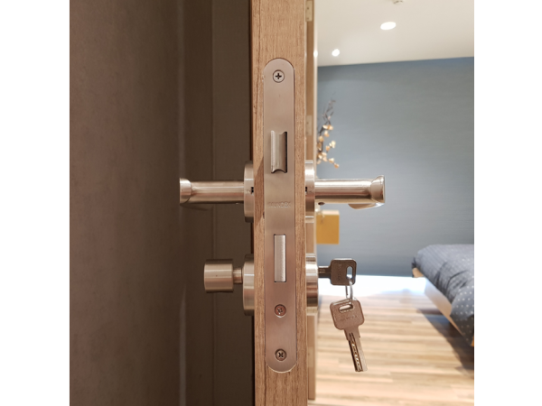 Đối với các loại cửa ra ban công hoặc cửa thông giữa các phòng, việc sử dụng thân khóa êm ái sẽ tạo cảm giác liền mạch, hài hòa, không làm gián đoạn dòng chảy không gian và không gây ảnh hưởng đến các hoạt động khác trong nhà.