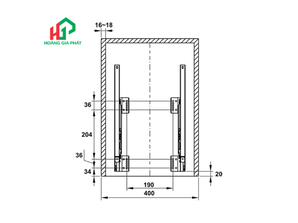 Sản phẩm này được thiết kế dành cho tủ bếp có chiều rộng tối thiểu 400mm. Điều này cho phép thùng rác được lắp đặt gọn gàng bên trong, không ảnh hưởng đến các khoang tủ và ngăn kéo khác.