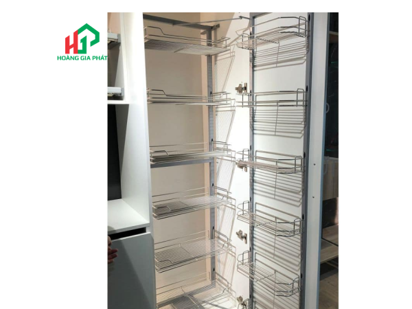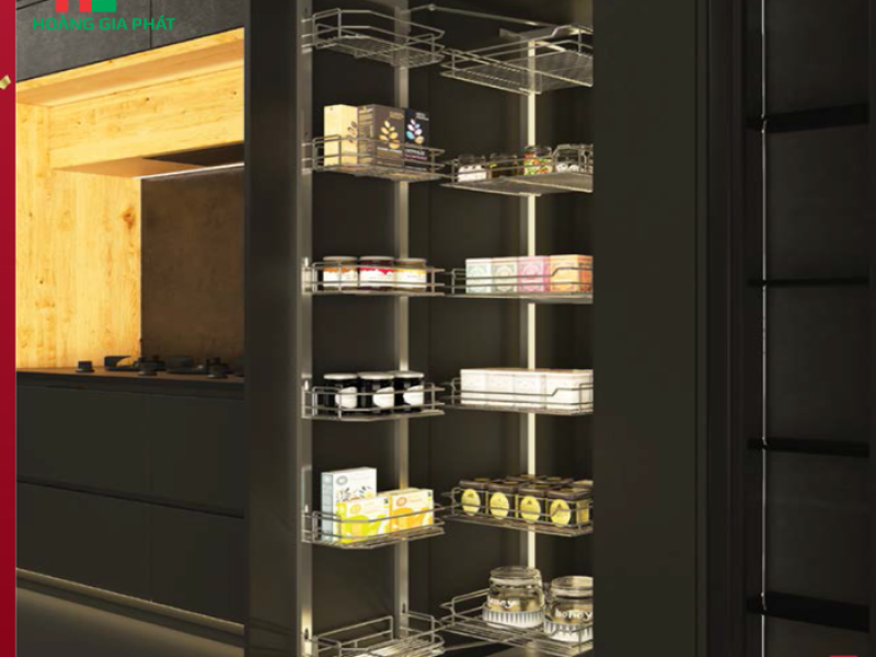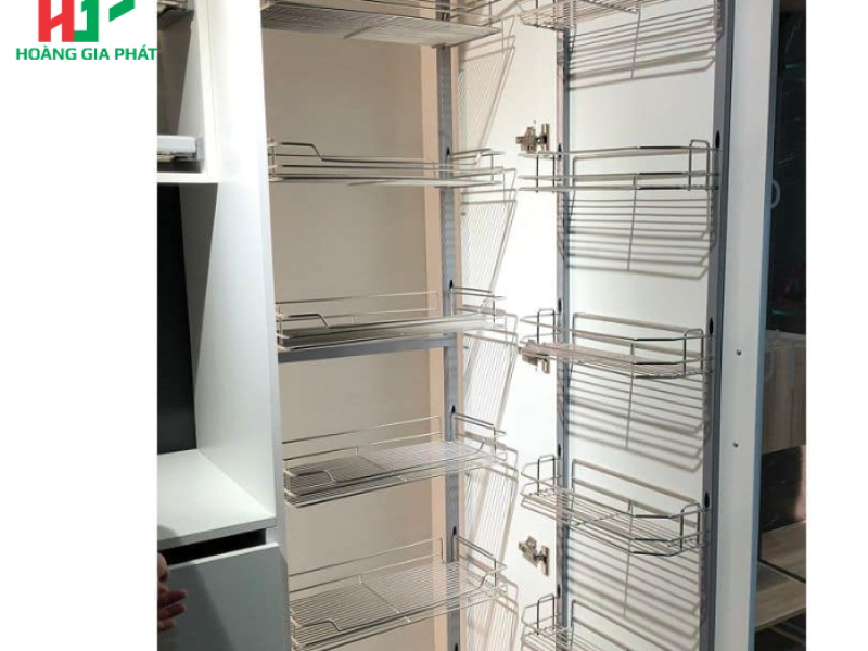 Điểm cộng lớn nhất của tủ đồ khô Hafele là khả năng tối ưu hóa không gian lưu trữ. Với 6 tầng khay, sản phẩm cho phép bạn phân loại và sắp xếp đa dạng các loại thực phẩm, từ chai lọ gia vị, các loại ngũ cốc, đến các loại bánh kẹo khô. Mỗi tầng khay đều được thiết kế khoa học, tận dụng tối đa chiều cao và chiều sâu của tủ, giúp bạn chứa được nhiều đồ hơn mà vẫn đảm bảo sự gọn gàng, ngăn nắp.