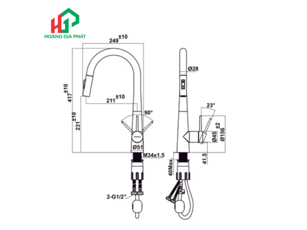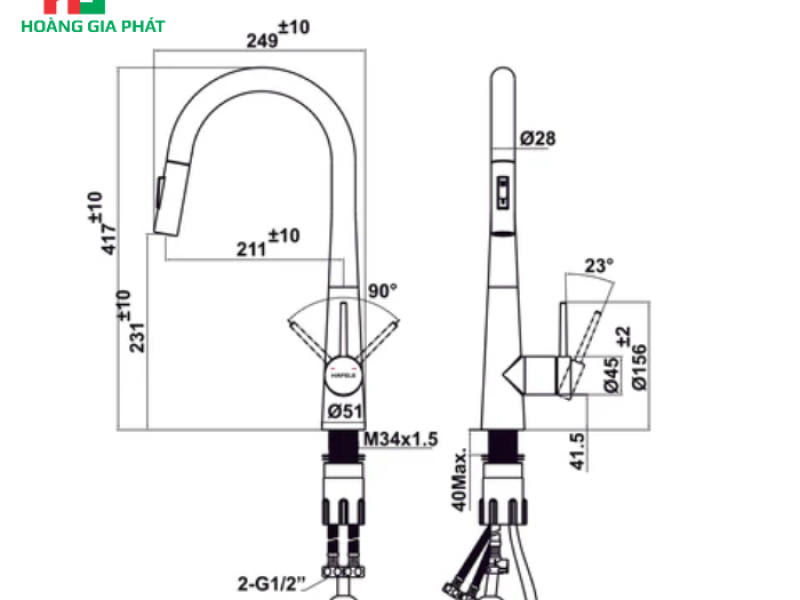 Thông tin kỹ thuật chi tiết của Vòi bếp Hafele 570.85.041 CHROME MỜ