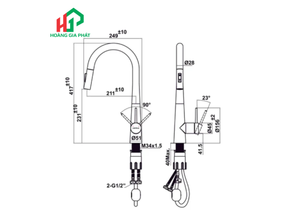 Vòi bếp Hafele Màu Đen 567.24.498 không chỉ thu hút bởi vẻ ngoài mà còn bởi những thông số kỹ thuật đáng nể, thể hiện sự tối ưu hóa trong từng chi tiết:
