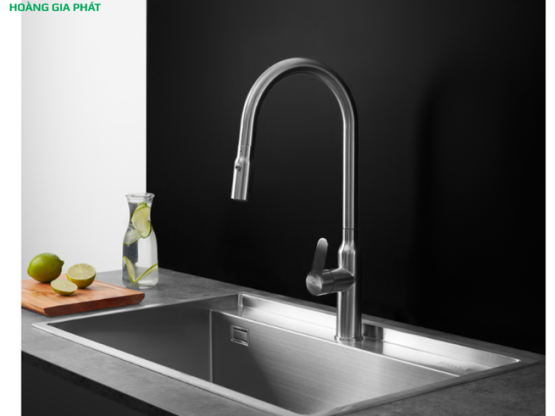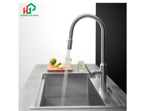 Tính năng dây rút là một điểm cộng lớn, mang lại sự tiện dụng vượt trội so với các loại vòi truyền thống. Dây rút với chiều dài lên đến 1 mét cho phép người dùng kéo dài vòi ra để lấy nước hoặc vệ sinh các khu vực xa, làm sạch mọi ngóc ngách của bồn rửa một cách dễ dàng. Sự linh hoạt này giúp vòi K046-SS có thể kết hợp hoàn hảo với cả bồn rửa 1 hộc hay 2 hộc, tối ưu hóa không gian và công năng sử dụng.