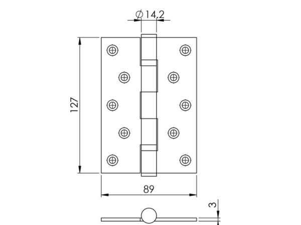 Bản lề lá lớn 2 bi Imundex 701.12.900 sở hữu kích thước ấn tượng: 127 x 89 x 3 mm. Kích thước này kết hợp với chất liệu Inox 304 cao cấp cho phép bản lề đạt được khả năng tải trọng tối đa lên đến 120kg khi sử dụng 3 chiếc. Con số này vượt trội so với nhiều loại bản lề thông thường, khẳng định khả năng đáp ứng hoàn hảo cho các loại cửa gỗ nặng, cửa thép hoặc các ứng dụng đòi hỏi sự vững chắc tuyệt đối.