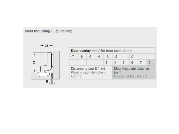 Để đáp ứng nhu cầu lắp đặt đa dạng, Bản Lề Lọt Lòng Giảm Chấn Hafele 315.06.752 được trang bị các thông số kỹ thuật chi tiết và khả năng điều chỉnh linh hoạt: