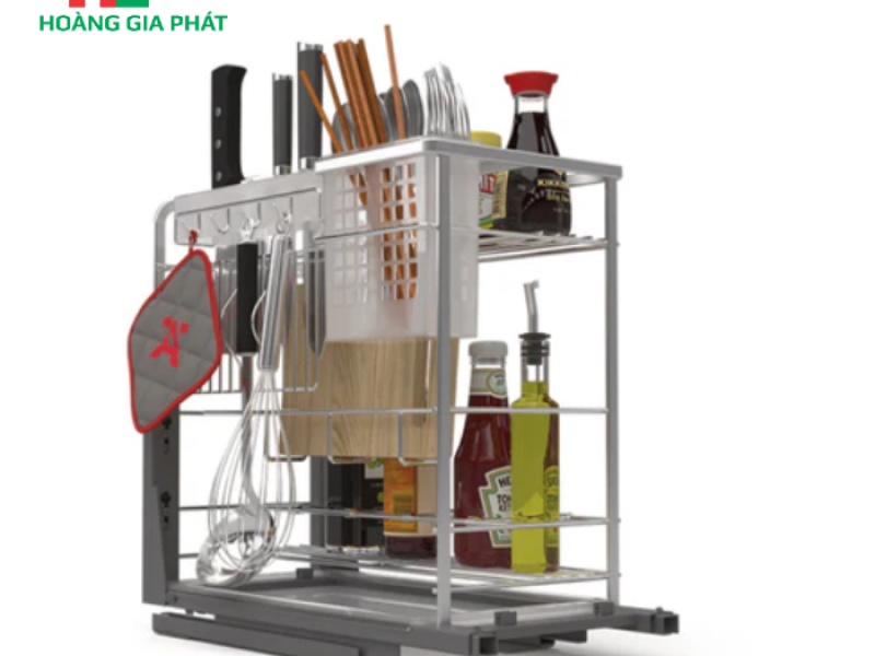 Đây là công dụng chính và rõ ràng nhất của sản phẩm. Bộ rổ Hafele 549.20.020 giúp bạn sắp xếp gọn gàng tất cả các loại chai lọ gia vị, từ muối, tiêu, đường, bột ngọt cho đến các loại dầu ăn, nước mắm, tương ớt,... Các chai lọ được đặt thẳng đứng, dễ dàng quan sát và lấy ra khi nấu nướng. Ống đũa và ống dao đi kèm cũng giúp việc lưu trữ dao, thớt, đũa, thìa trở nên ngăn nắp và an toàn.