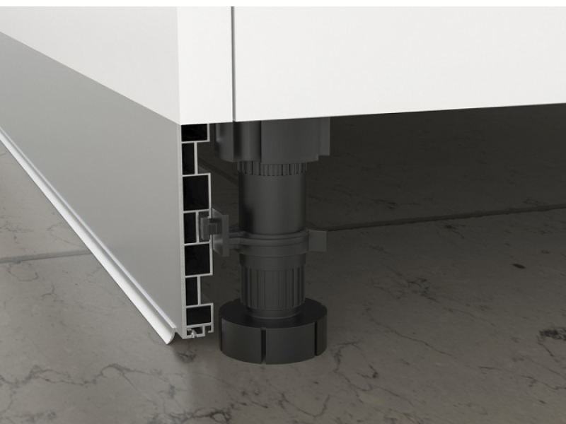Một trong những ưu điểm nổi bật của chân tủ bếp Imundex 7807900 là khả năng điều chỉnh chiều cao trong khoảng từ 80mm đến 95mm. Tính năng này cho phép người dùng dễ dàng điều chỉnh độ cao của tủ bếp để phù hợp với mọi loại địa hình sàn nhà, ngay cả những sàn không bằng phẳng. Việc điều chỉnh chiều cao cũng giúp cân bằng tủ, đảm bảo cánh cửa tủ đóng mở dễ dàng và tránh tình trạng tủ bị kênh hay xệ cánh. Phạm vi điều chỉnh linh hoạt này mang đến sự tiện lợi tối đa trong quá trình lắp đặt và sử dụng.