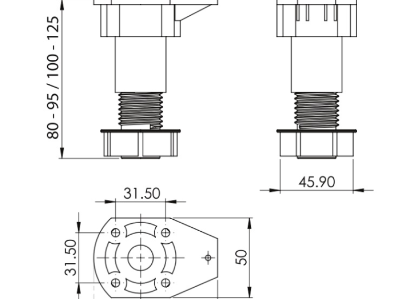 Khả năng điều chỉnh chiều cao 80 - 95mm giúp việc lắp đặt trở nên dễ dàng trên mọi địa hình, đồng thời tối ưu hóa công năng sử dụng.