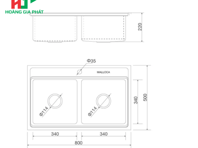 Chậu rửa chén 2 hố MALLOCA MS 8812
