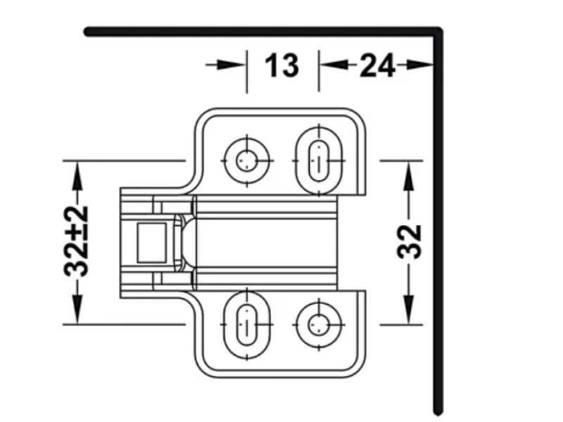 Điểm đặc biệt của mẫu đế bản lề này là 4 lỗ bắt vít, mang lại sự cố định chắc chắn và phân bổ lực đều lên bề mặt lắp đặt. Cơ chế lắp đặt bằng vít giúp việc gắn kết trở nên dễ dàng và an toàn. Đế bản lề được thiết kế để lắp vào cửa và tủ thông qua cơ cấu nhấn SM, một công nghệ hiện đại giúp tối ưu hóa quá trình lắp đặt và tháo gỡ khi cần thiết. Hệ chén bản lề có kích thước 48/6 mm với đường kính chén 35 mm và chiều sâu khoan chén 12 mm, cho phép lắp đặt linh hoạt vào nhiều loại cánh cửa với độ dày khác nhau.