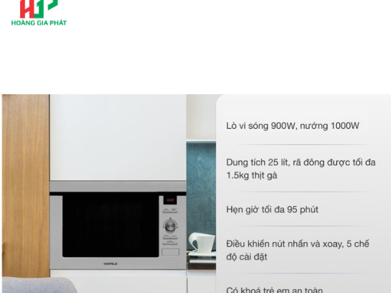 Với phương châm "Mang đến giá trị bền vững cho mọi công trình", Công Ty TNHH XNK TM Hoàng Gia Phát luôn nỗ lực không ngừng để nâng cao chất lượng sản phẩm và dịch vụ. Chúng tôi tin rằng, một không gian sống hoàn hảo không chỉ đến từ những sản phẩm đẹp mắt mà còn từ sự tiện nghi, bền bỉ và an toàn. Lò vi sóng kết hợp nướng Hafele 538.31.200 là minh chứng cho cam kết này, là sự lựa chọn tối ưu cho những ai đang tìm kiếm một thiết bị bếp đa năng, đẳng cấp và đáng tin cậy. Hoàng Gia Phát cam kết mang đến trải nghiệm mua sắm và sử dụng sản phẩm tốt nhất, góp phần kiến tạo nên những tổ ấm mơ ước cho mọi gia đình Việt.